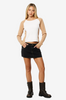 Perfect for bringing in the weekend, from dinner to drinks, you’ll love this skirt with a white tank, leather jacket, and high-rise boots for extra edge