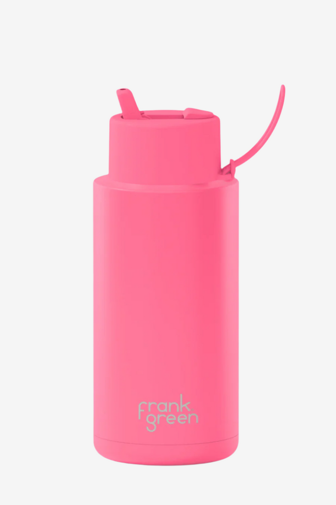 FRANK GREEN CERAMIC REUSABLE BOTTLE + FLIP STRAW 34oz/1000ml - BUBBLEGUM BLAST