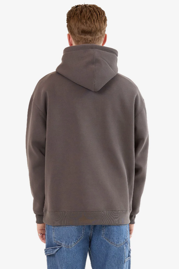 The Cherub Pull Over Hood in Worn Black brings warmth and weight in a heavy-duty 450gsm brushed fleece blend. With an embroidered chest graphic of the winged cherub and tonal worn black colourway, this men's hoodie delivers vintage energy with a street edge. It’s built with a double-layered, adjustable hood, ribbed cuffs and hem, and a roomy kangaroo pocket for added comfort and utility.