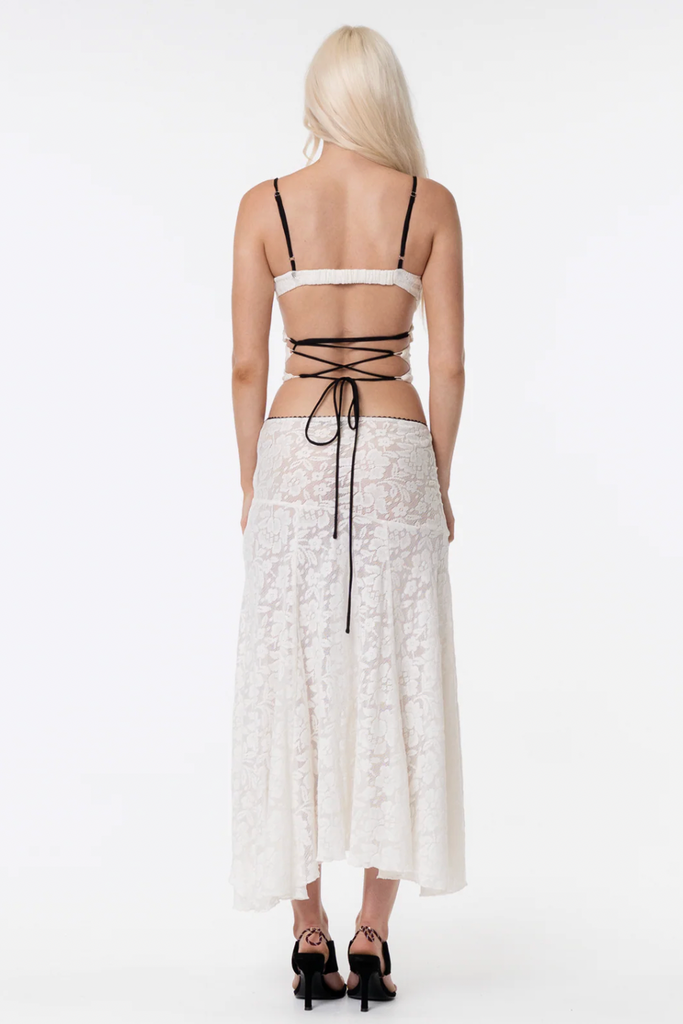 Introducing the JGR & STN Myra Tie Top. Featuring a backless design, contrast straps and adjustable ties. Pairs perfectly with the Myra Maxi Skirt.