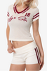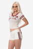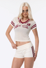 Introducing the JGR & STN Tace Knit Shorts. Made in a stretch rib fabric with an engineered stripe on side. Featuring a fold over waistband.