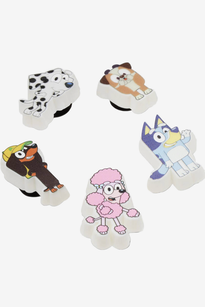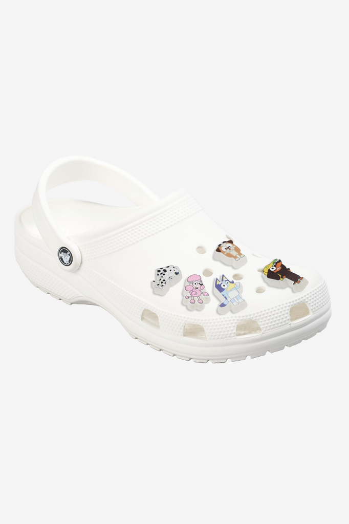Pop some personality into your shoes with these Bluey Mix 5 Pack Jibbitz™ charms. They’re the perfect addition to your favorite pairs of clogs, slides, and more.