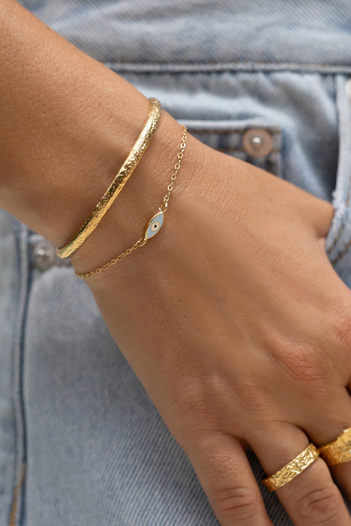 - Fine and dainty, the elegant Cosmos Bracelet is a perfect gift for a special someone, here to protect them against bad energy all year long! This delicate chain features a cute evil eye charm, available in vanilla, blush and sky.