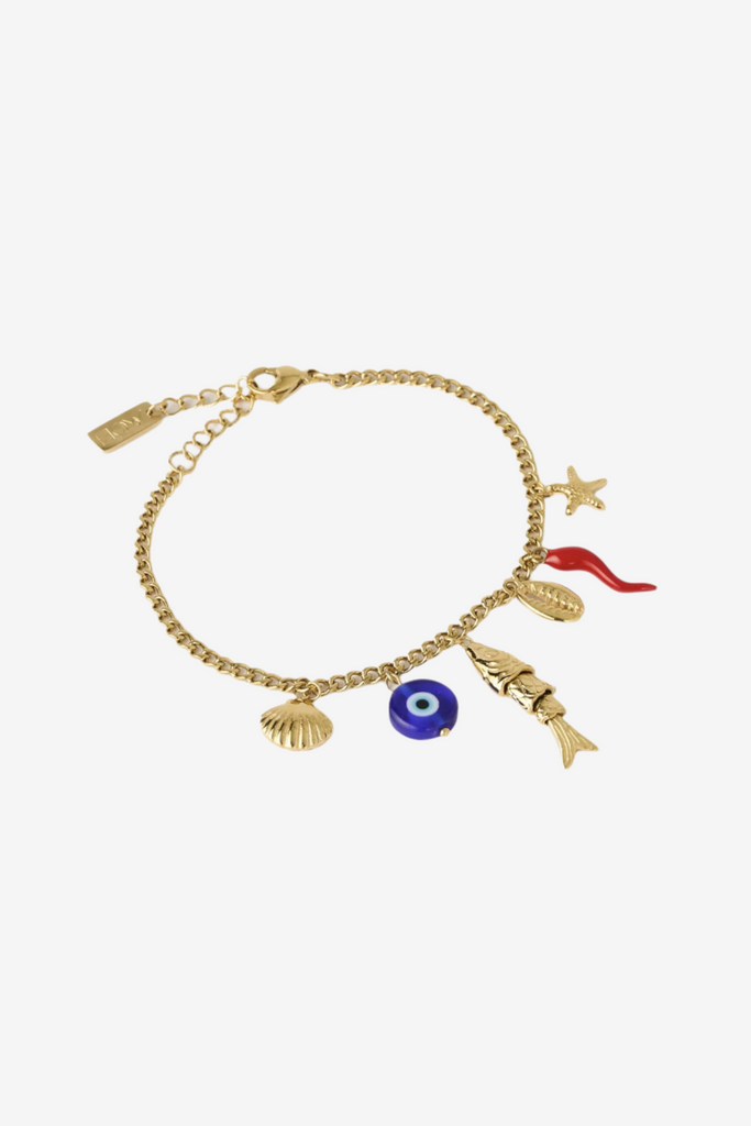 .Attract positive vibes only with our cool Oceanus Bracelet, adorned with a range of summer-inspired lucky charms to guide you though your everyday life. Oceanus is the perfect finishing touch to your resort wear attire, pairing perfectly with the matching Oceanus Necklace for a truly stylish look.