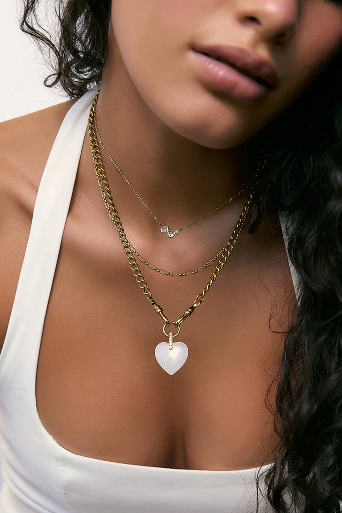ARMS OF EVE VIOLET HEART NECKLACE - WHITE AGATE