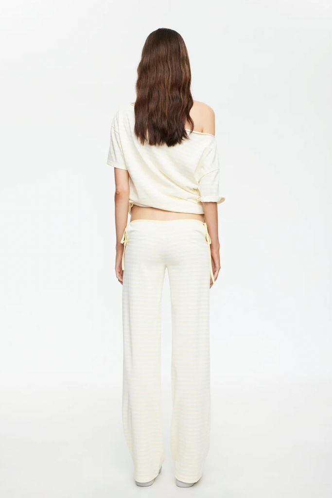 The Bloom Tie Pant is a low-rise essential designed with a sleek straight-leg silhouette. Featuring adjustable tie details at the sides and finished in our iconic Bloom stripe it's perfect for everyday styling. This piece works perfectly styled with our Bloom Long Sleeve in Lemontini.