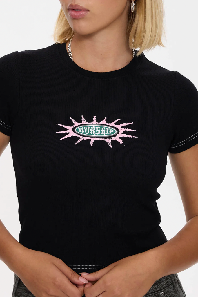 WORSHIP SUPPLIES LOGO FEVER SLIM FIT TEE - BLACK