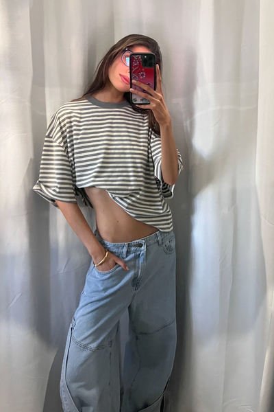 LIONESS LIONESS BLOOM SHORT SLEEVE - ASH STRIPE $59.00 XXS Low Inventory XS Out of stock S Out of stock M Out of stock L Out of stock XL Out of stock