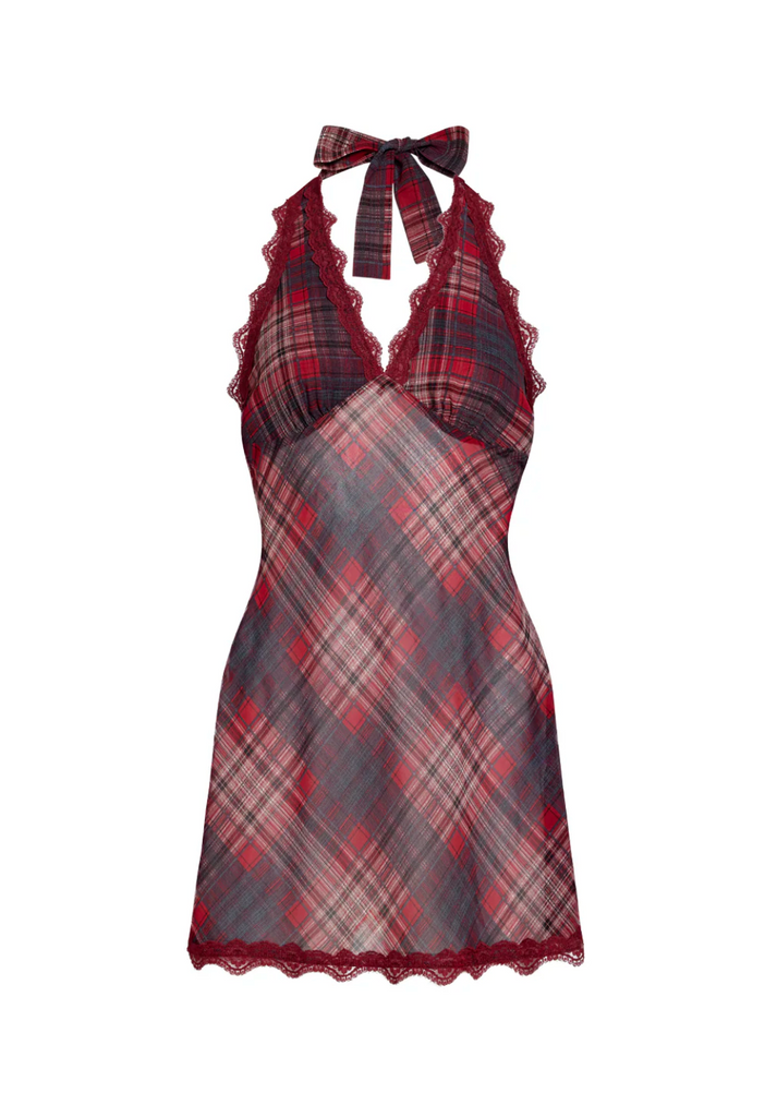 LIONESS STARS ALIGN MINI DRESS - CRIMSON PLAID