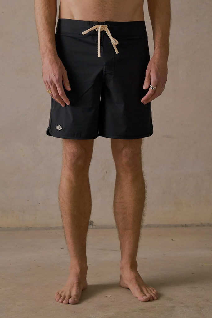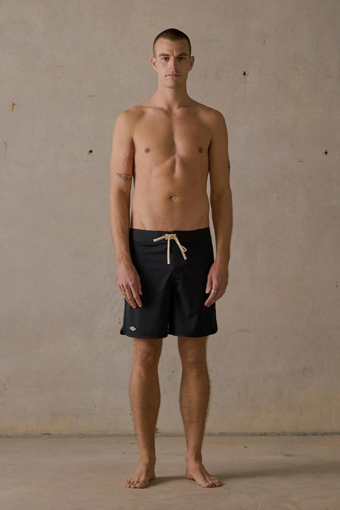 Introducing our core surf boardshort. Tried and tested by our crew to get the fit and function just right, these boardies are made from a 4-way stretch recycled nylon, that moves with you whichever way you need to go. The Stretch Boardshort lands just above the knee on most and features a side seam scallop for a retro look and maximum maneuverability. The ridiculously comfortable fabric is quick-drying (on or off your legs) making them perfect for all day. We've removed the inside leg seams and added soft rubber taping on all inner seams to avoid chafing - making them ideal for those marathon sessions and run-arounds. These no-nonsense boardies are finished with a jacquard cotton drawcord for extra grip, rubber eyelets, mesh rear pocket bag for drainage and an internal dobby waistband for added grip around your waist