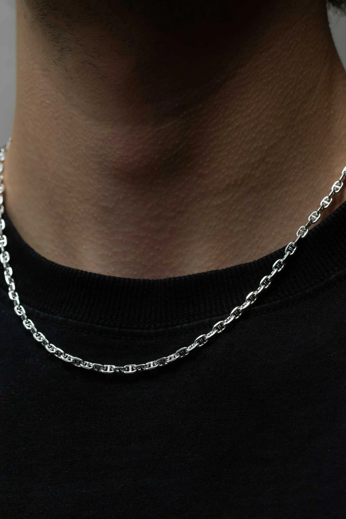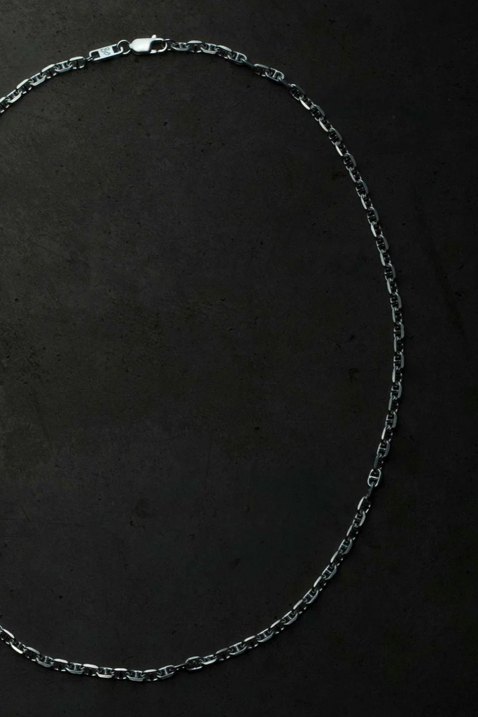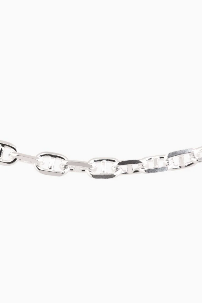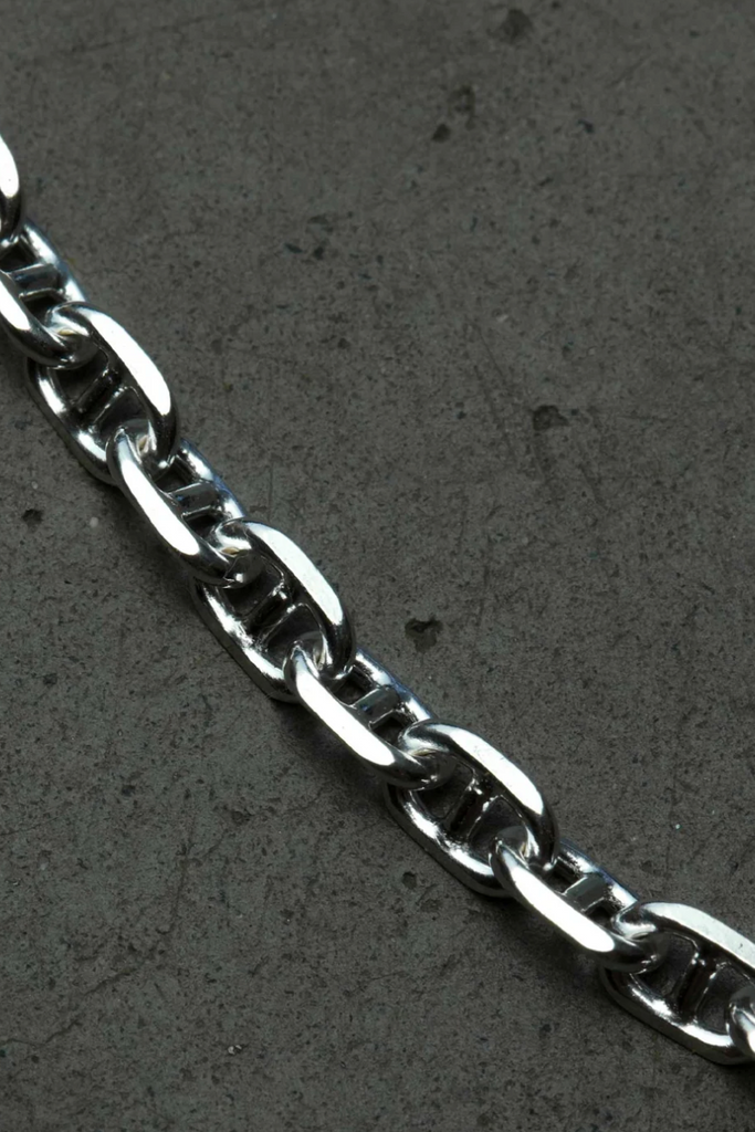 The Cable Bar Chain Necklace features a 4mm width and is a loose-fitting round cable bar style chain for a thinner yet heavy style chain necklace, cast in 925 sterling silver. Available in 45mm, 50mm and 55mm lengths.