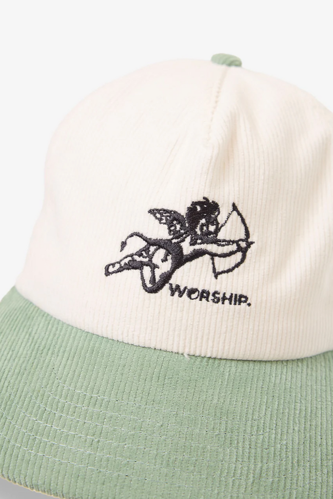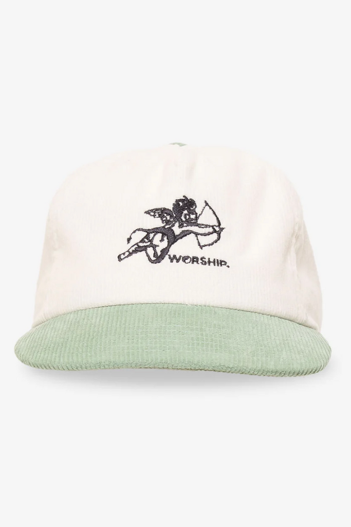 - Crafted from soft 11 wale corduroy, the Cherub Cord Hat in Cream/Mineral is a laid-back headwear accessory with a vintage-inspired edge. This men's cap features a curved brim, tonal contrast underbill, and iconic cherub embroidery on the crown. Designed in a one-size fit with adjustable closure at the back, it’s the ideal finish to any everyday fit.