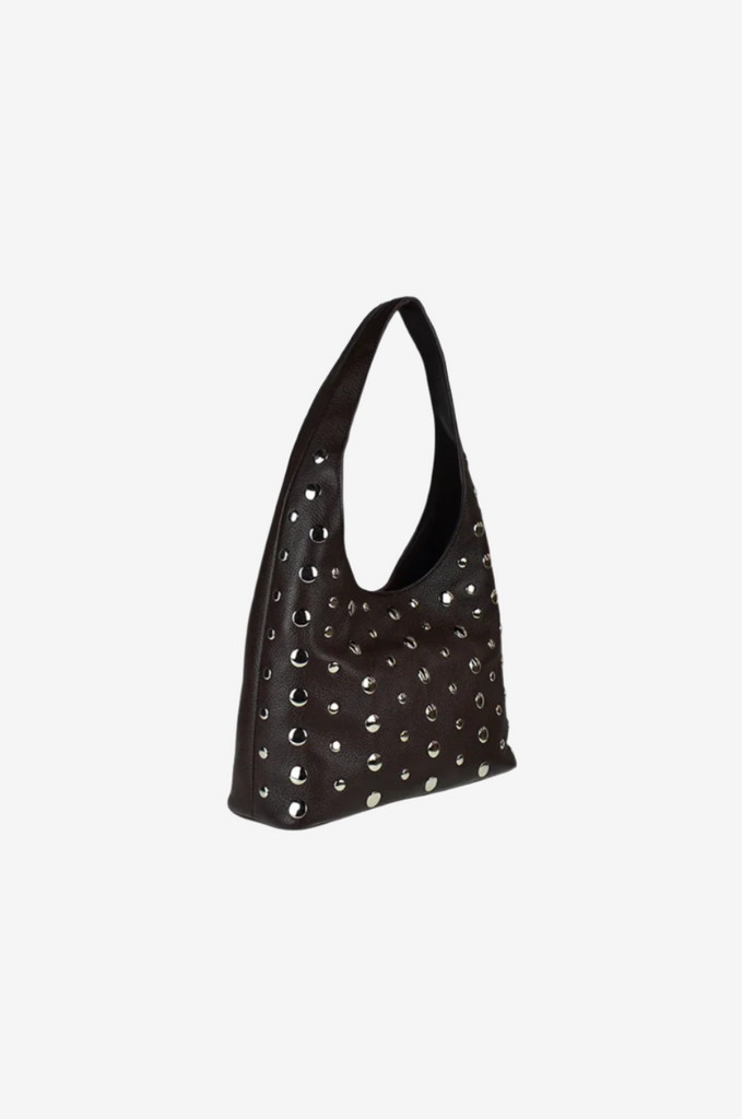 PETA + JAIN JENNI MEDIUM STUDDED BAG - CHOC PEBBLE/SILVER