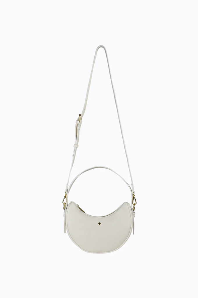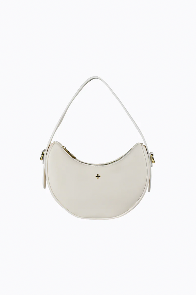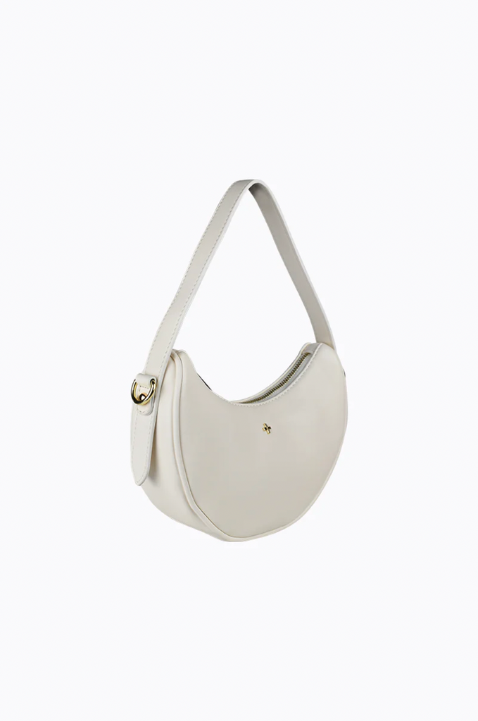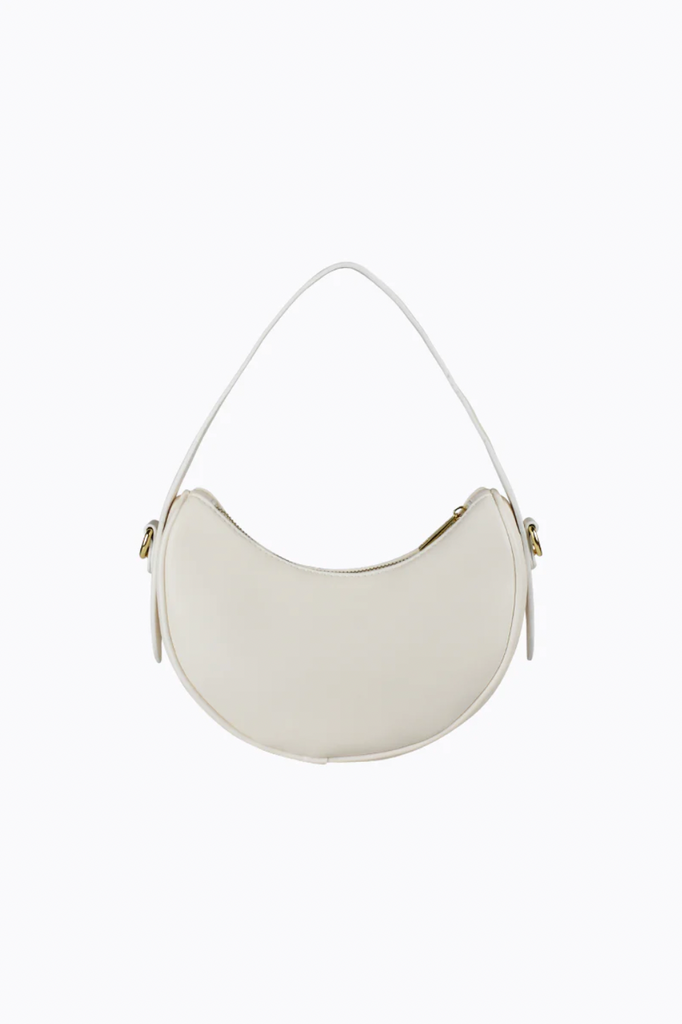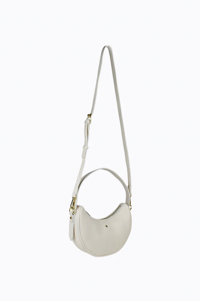 - Sunkissed is a crescent shaped shoulder bag with a main compartment secured by a zipper, along with two interior pockets (one open and one with a zipper).