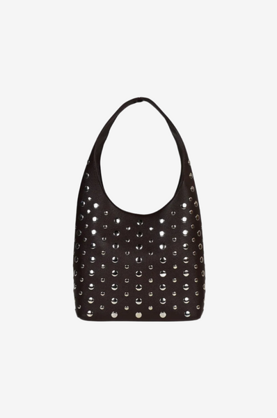 PETA + JAIN YOKO STUD HOBO BAG - CHOC PEBBLE/SILVER