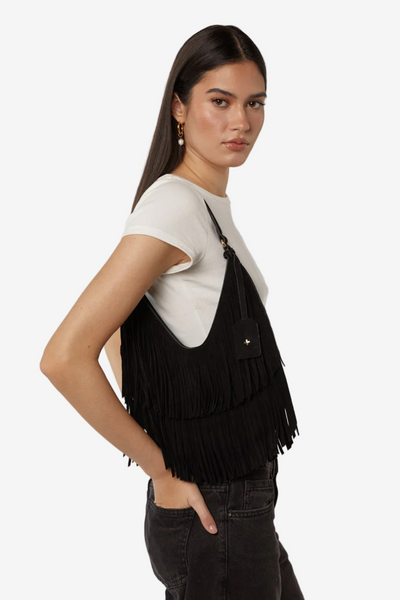 PETA + JAIN PHOEBE SMALL FRINGE BAG - BLACK SUEDE/GOLD