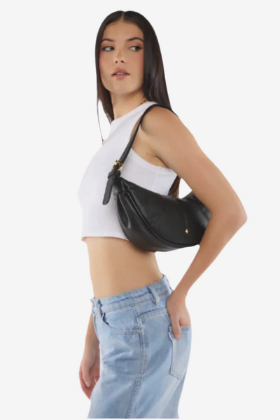 PETA + JAIN YOKO STUD HOBO BAG - BLACK PEBBLE/SILVER