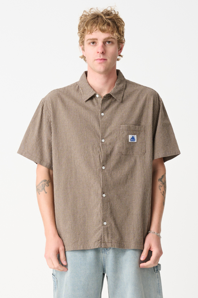X-LARGE LIAM SHIRT S/S BUTTON UP - BROWN