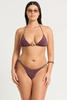 Discover Micro Crinkle, our latest fabrication exclusive to bond-eye. This micro version of our classic crinkle is designed with a tighter knit that offers improved stretch, superior recovery, and a firmer, more supportive fit. The Ring Ingrid Triangle features classic triangle cups, functional halter ties, thin straps and ring hardware. Suitable for AA-DD cups, this style offers moderate to light support. Handmade in Sydney, Australia.