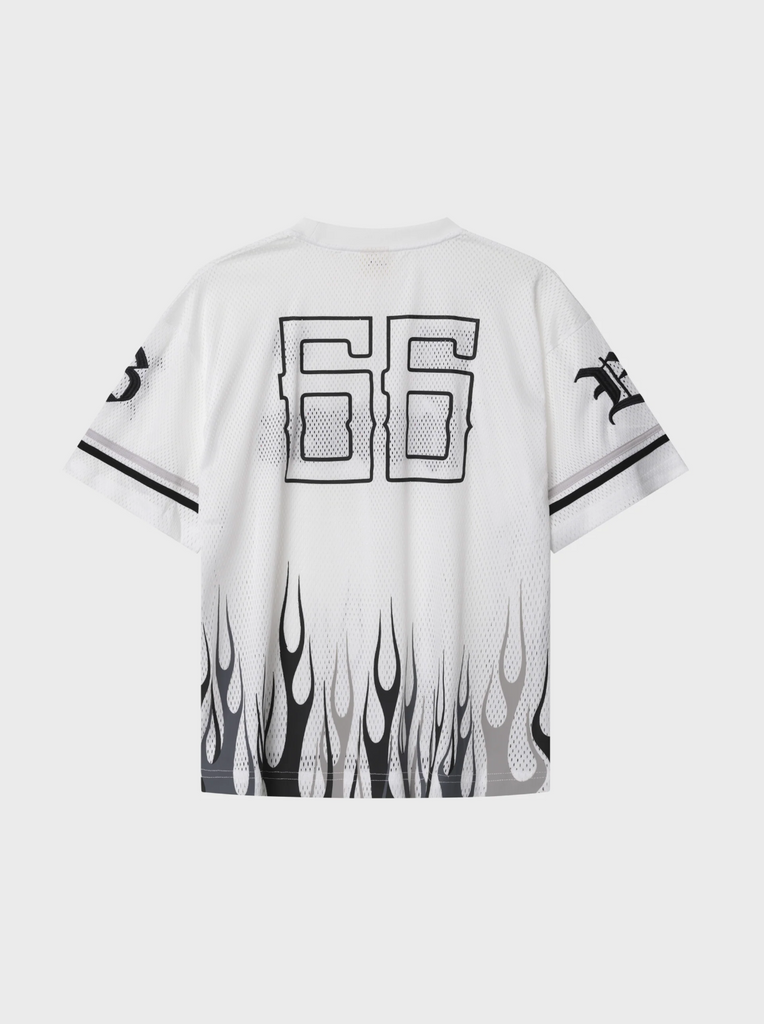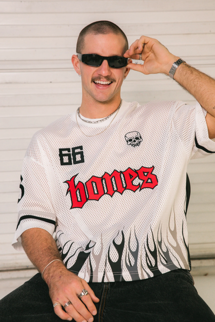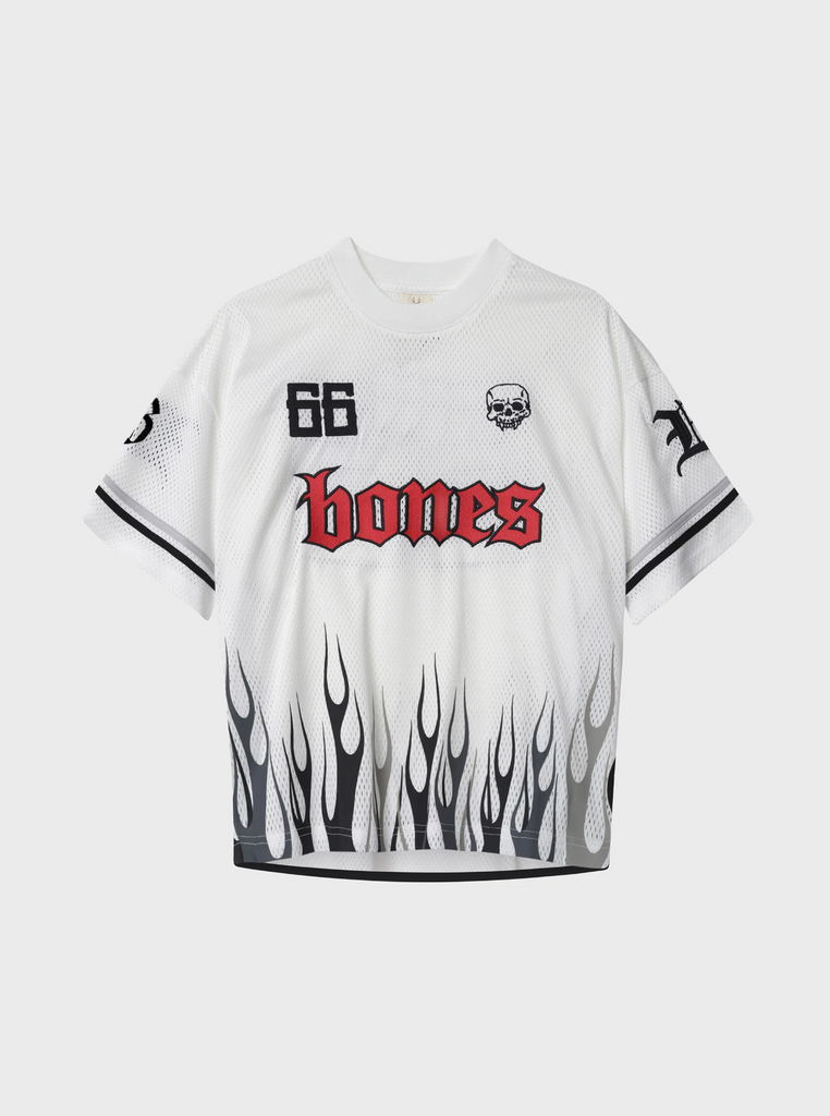 The latest Bones Jersey is here. The FC Burner Jersey, taking inspiration from our signature Burner Jersey Shorts with rising flames screen printed all around the bottom of the jersey.