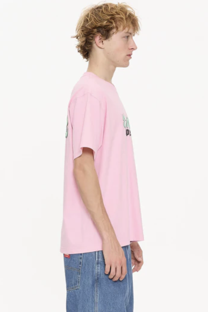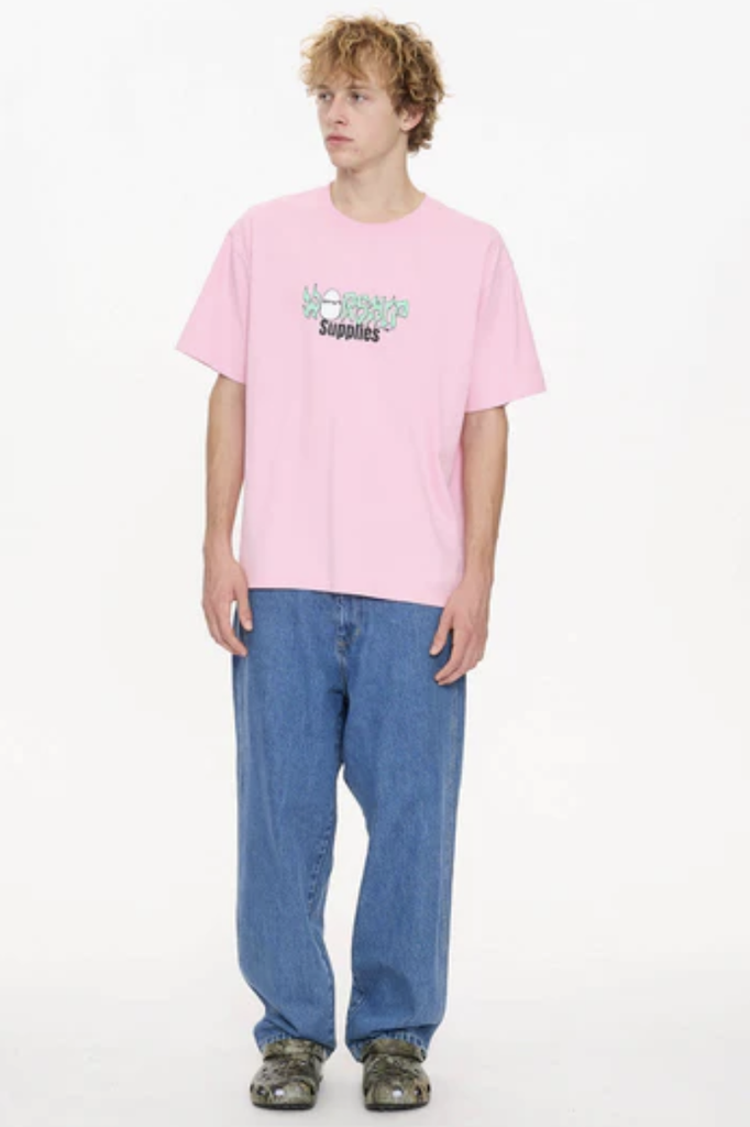 The Scrambled Tee in Flamingo makes a statement with its playful logo graphic set against a bold pastel base. Crafted from heavy-wearing cotton jersey, this oversized tee Australia design balances structure, dry hand premium feel and all-day comfort. The regular, roomy fit with a ribbed neckline offers everyday versatility, while the flamingo pink shade brings a fresh pop of colour to any streetwear line-up. Style it with baggy denim shorts or layer it over wide-leg pants for a fun, street-ready fit. Available now to buy online with t shirt free shipping AU-wide.