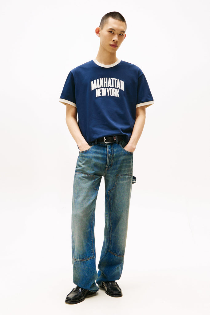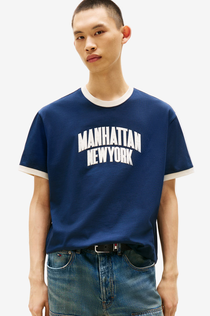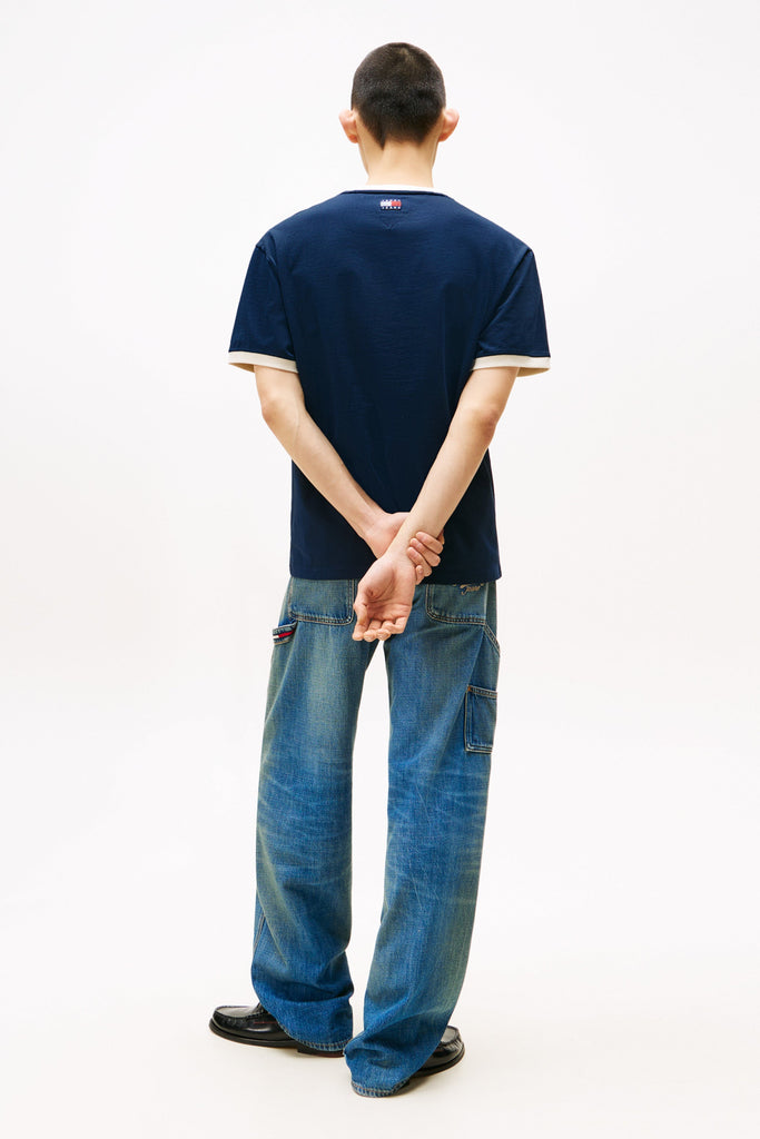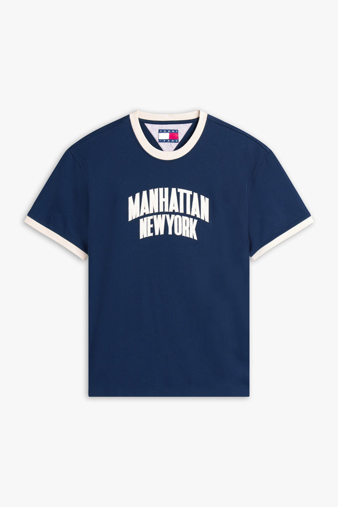 TOMMY JEANS VARSITY LOGO APPLIQUE RELAXED RINGER TEE - DARK KNIGHT NAVY