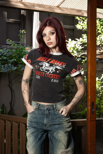 BILLY BONES CLUB BILLY BONES CLUB FLAMED RIDER BABY TEE - BLACK $69.95 XS Low Inventory S Low Inventory M Low Inventory L Out of stock