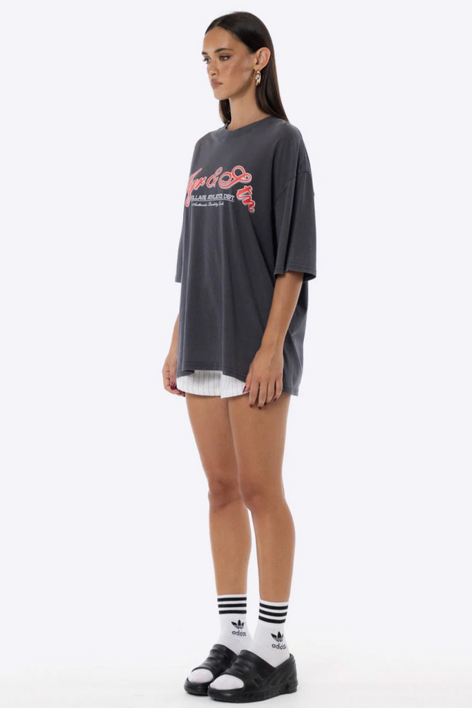 JAGGER & STONE BROOKS OVERSIZED TEE - WASHED BLACK/RED