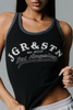 Introducing the JGR & STN Los Angeles Singlet. Designed to stand out from the rest. Featuring diamante details on a stretch rib fabric.