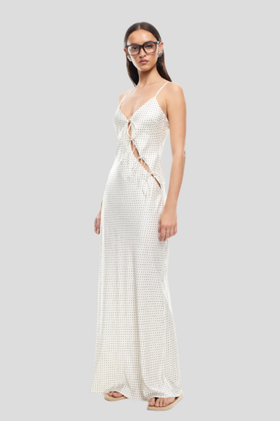 LIONESS LADIES PANTS LIONESS BASIC INSTINCT BACKLESS MINI DRESS - PARCHMENT