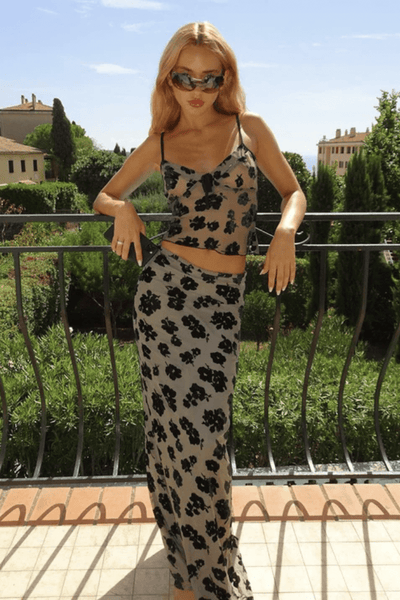 LIONESS TOPS LIONESS BASIC INSTINCT CAMI FLORAL - BLACK