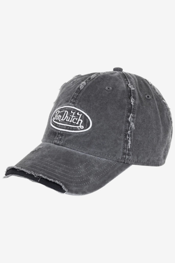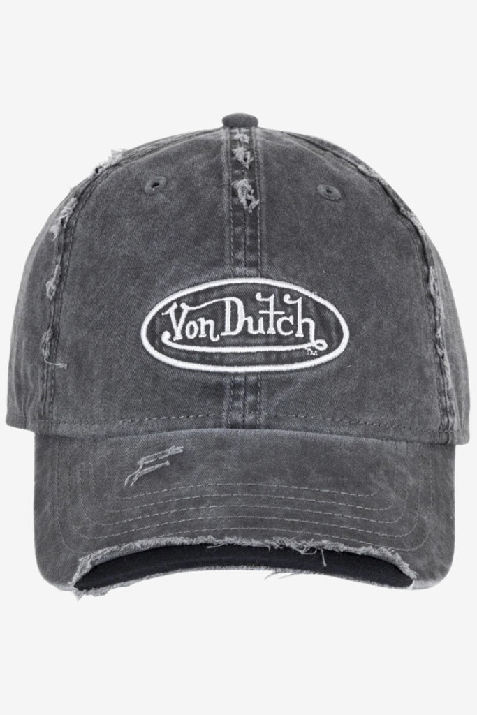 VON DUTCH DESTROYED TWILL EMBROIDERY DAD CAP - BLACK