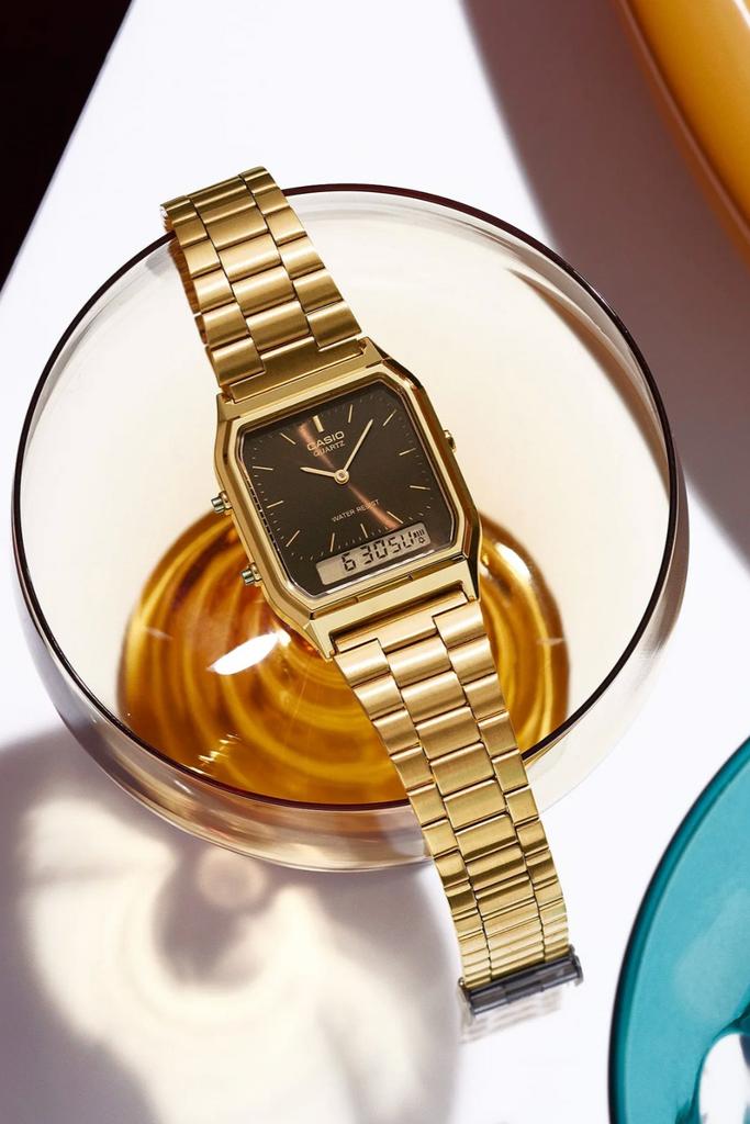 CASIO VINTAGE AQ230GA-9DS DRESS DUO - GOLD/BROWN