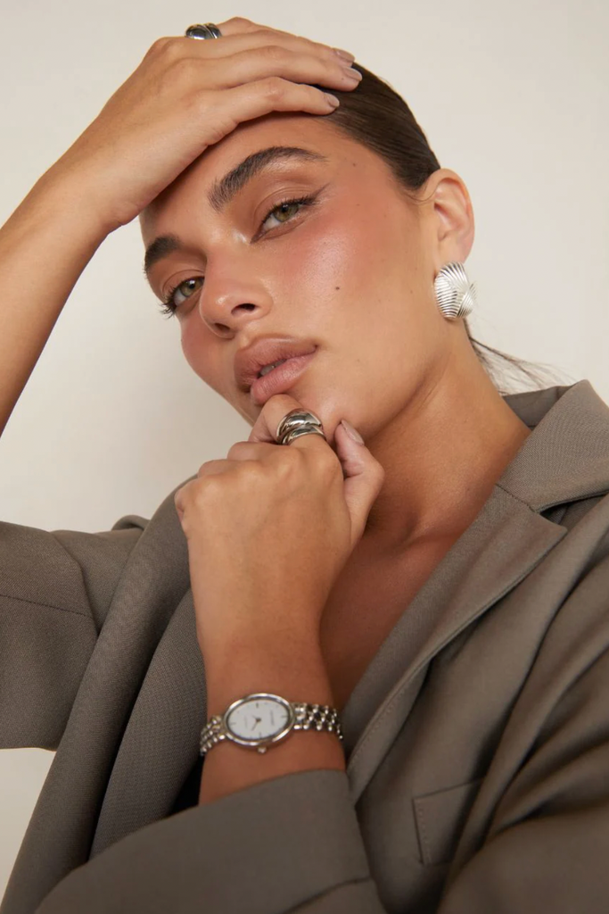 Crafted from high polish stainless steel, featuring an elegant oval watch face, the Phoebe embodies effortless sophistication and timeless appeal.