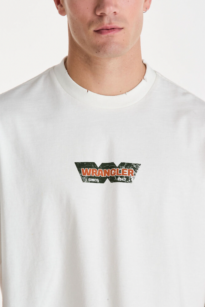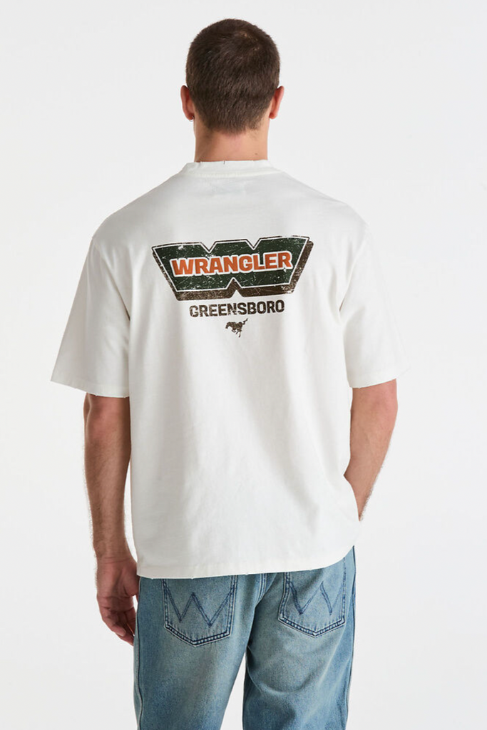 Our Slacker Tee silhouette is our baggiest, loose fitting tee. Designed to sit off shoulder and relaxed through the body. Crafted in a heavy weight, recycled cotton with a soft hand feel. The Durable Slacker Tee features a vintaged inspired moto advertisement graphic.
