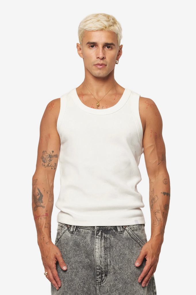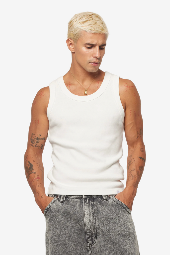• An everyday go-to. This tank brings a ‘90s style with its fitted shape, heavyweight rib cotton, and wide straps