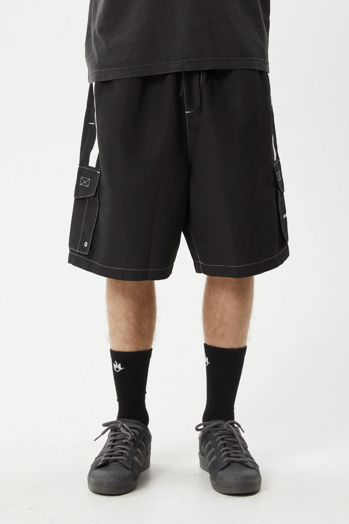 AFENDS HOUSE RELATED CARGO SWIM BOARD SHORT 20" - BLACK