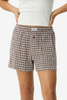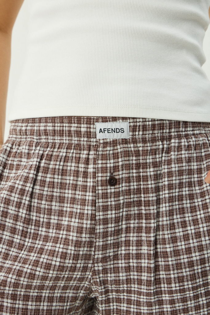 AFENDS WOMENS BASE SEERSUCKER BOXER SHORT - COFFEE CHECK