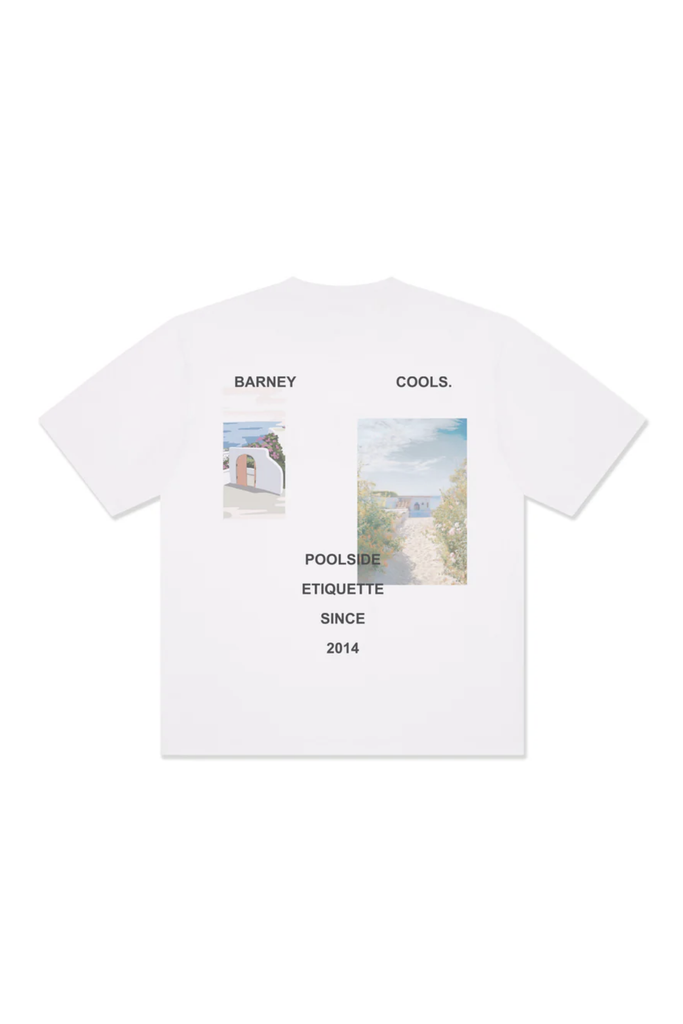 The Scenic Tee. Digital print back artworks trimmed with light puff print front & back logos. 260g heavyweight cotton fabric, relaxed fit tee in standard length with thicker neckline.