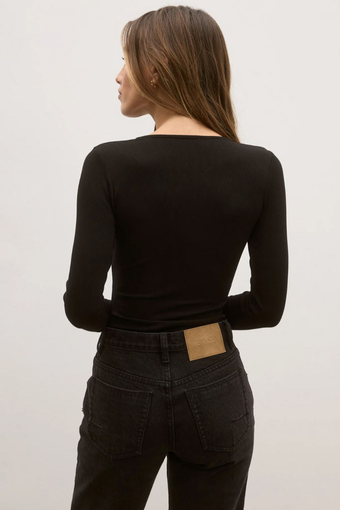 Introducing one of our best-sellers, our Lara Bodysuit. Our Lara highlights the beauty of minimalist style. Featuring a high crew neckline, button down feature through the front of the garment and a fitted silhouette. She is endlessly versatile and will quickly become your favourite wardrobe basic.