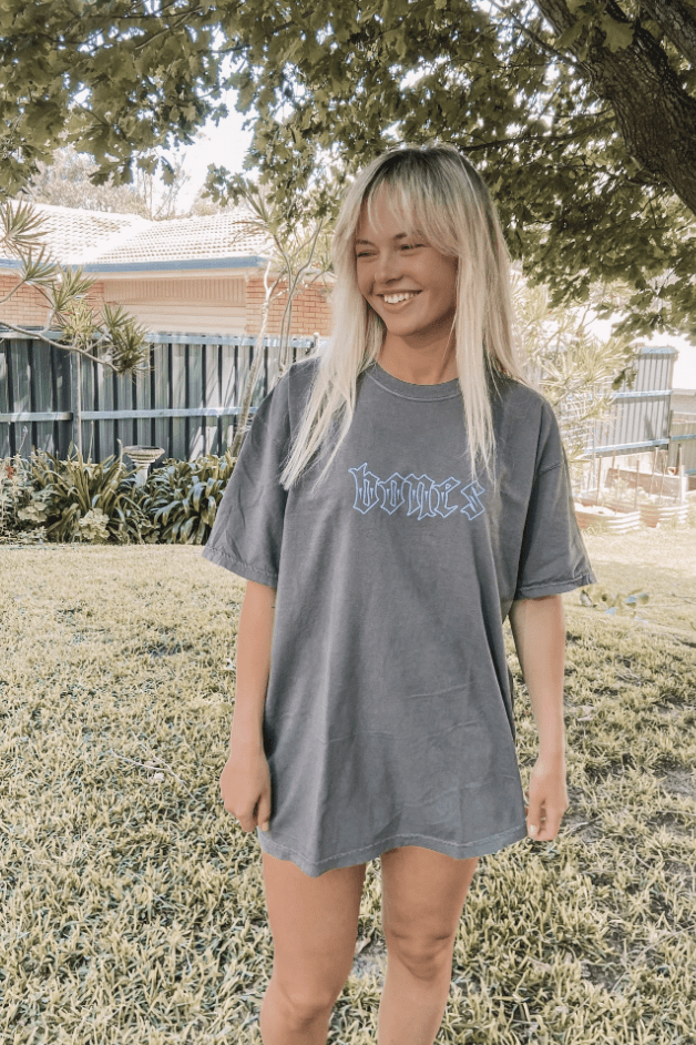 The Bones classic range is a tribute to a simpler time. Strip away the prints, the tears, the fades and what do you have left? The simple yet essential elements that underpinned our youth. Shape, colour and feel - the pillars of quality for children of the 90’s and early 2000’s, and now the pillars of our classic club range. Sizing: Our classic tees are pretty standard sizing, so buy how you want to wear it, if you want it big and baggy go a size up but if you want it to fit normally wear your standard size. Female model is 160cm and wears an XL