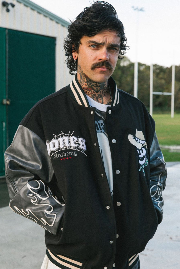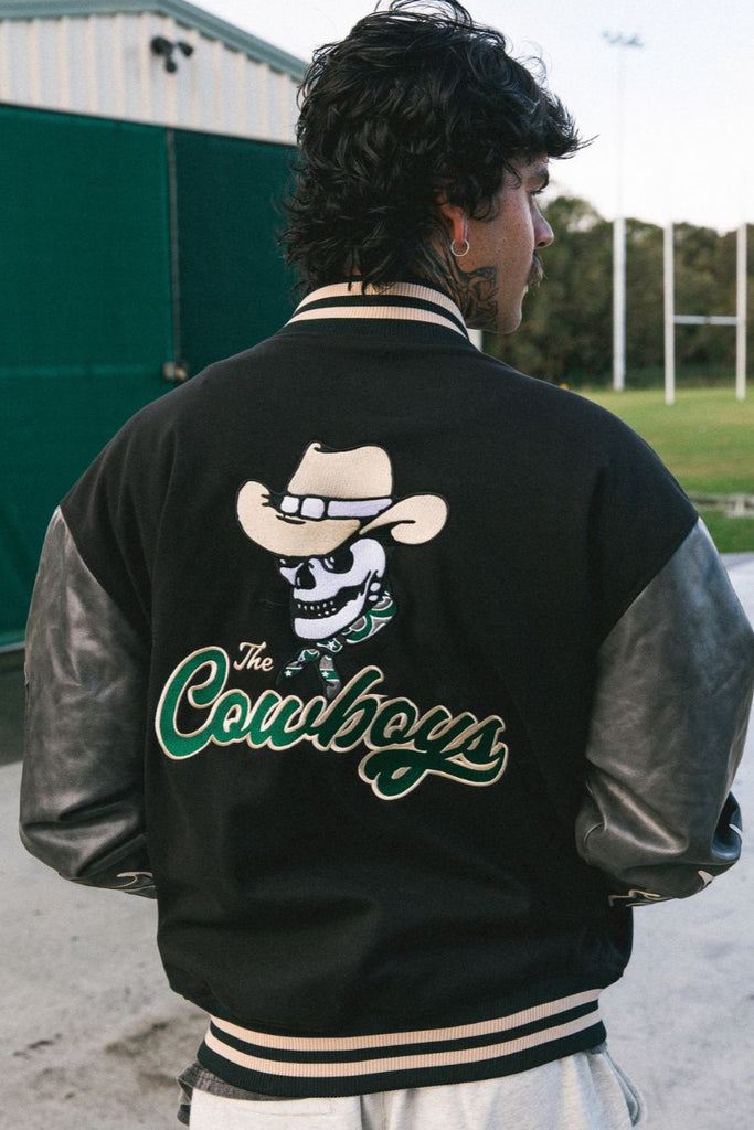 BILLY BONES CLUB COWBOYS VARSITY JACKET - BLACK/GREY