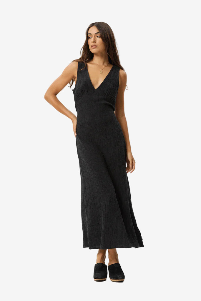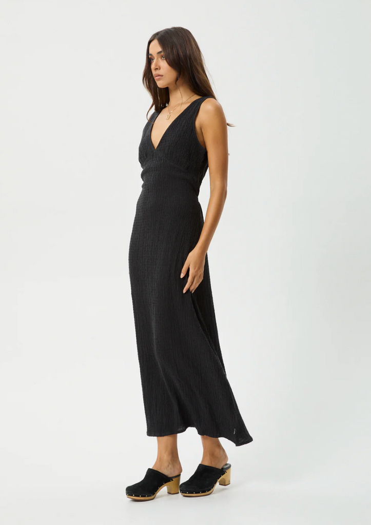 AFENDS WOMENS FOCUS SEERSUCKER MAXI DRESS -BLACK