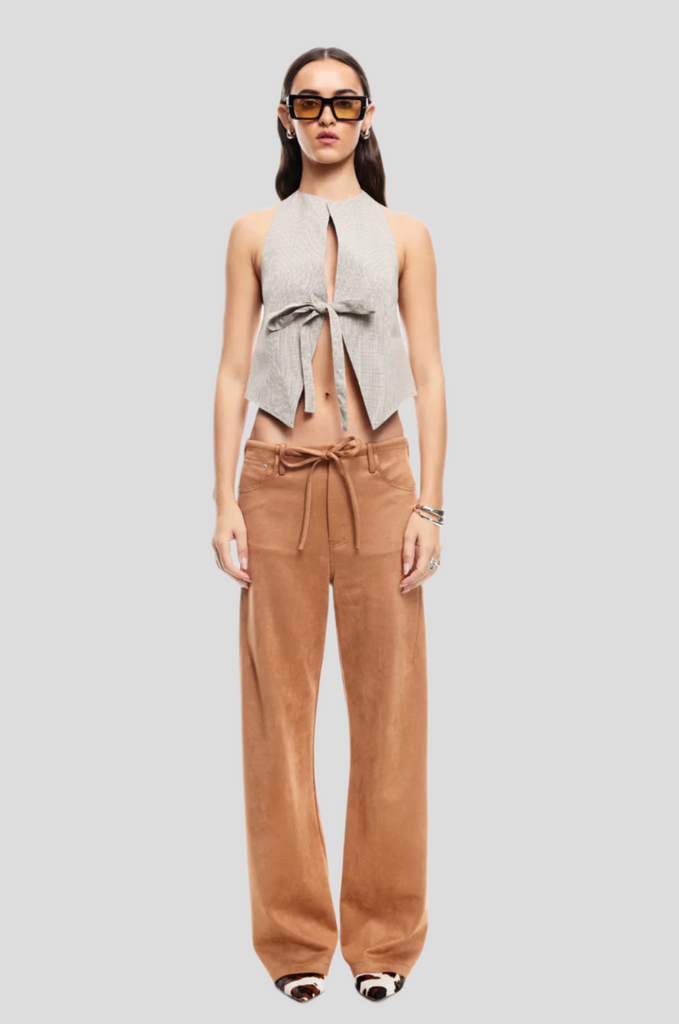 LIONESS BUTTERFLY TIE TOP - BEIGE GINGHAM