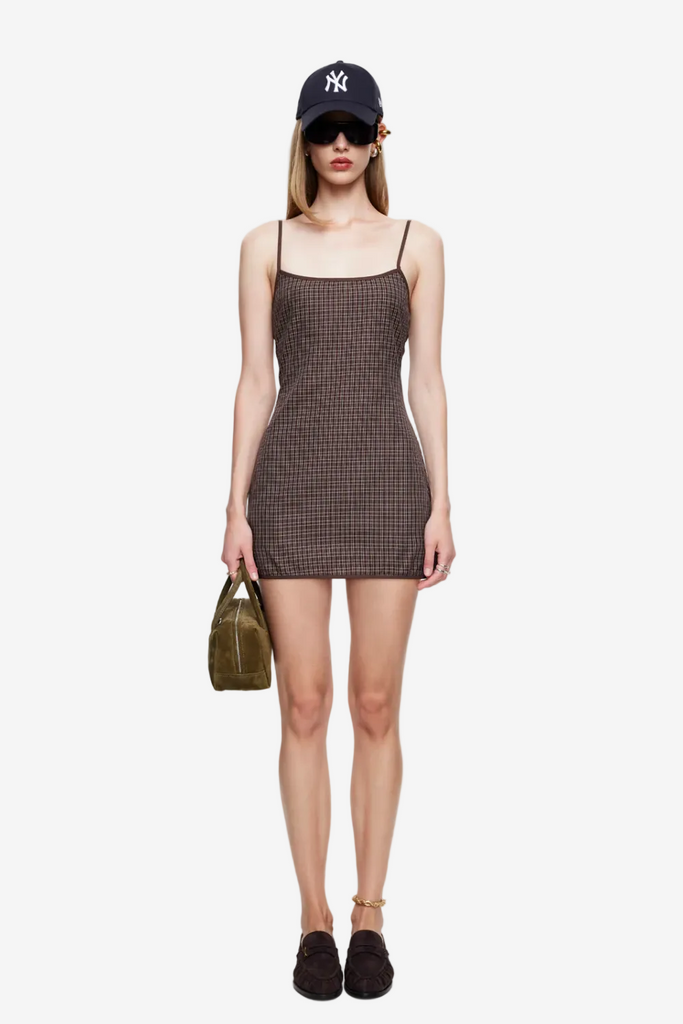 LIONESS VOYAGE MINI DRESS - CHOCOLATE GINGHAM