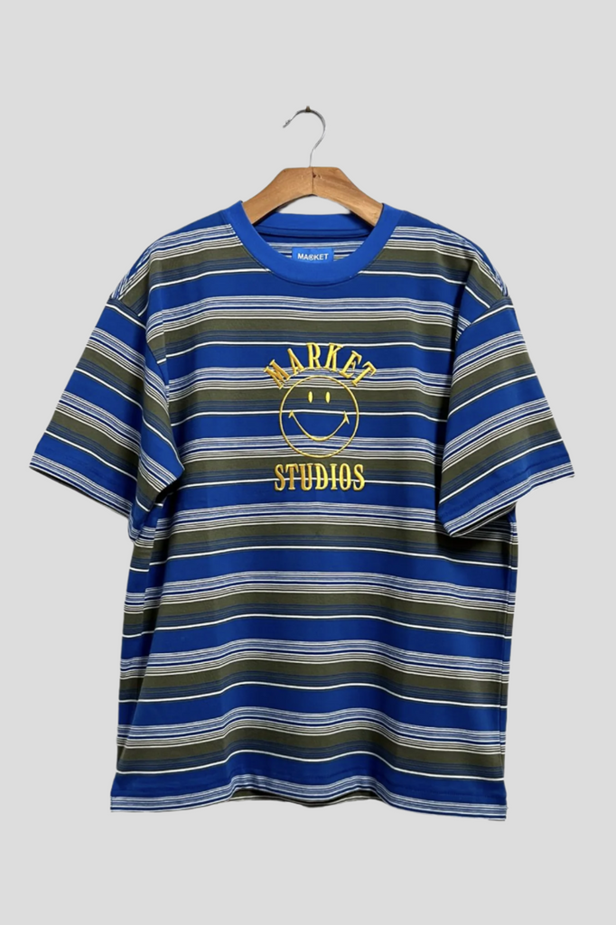 MA®KET STUDIOS SMILEY LOCKUP T-SHIRT - STRIPED BLUE