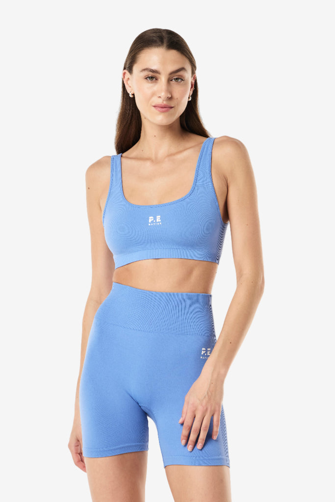 The Restore Seamless Sports Bra in comes as part of our RE/CREATION Collection. Designed from a lightweight seamless fabrication, this tank is perfect for low intensity movements. Featuring a ribbed hem and binding on the collar and sleeve, this tank is worn best with the matching Restore Seamless Legging or Bike Short.