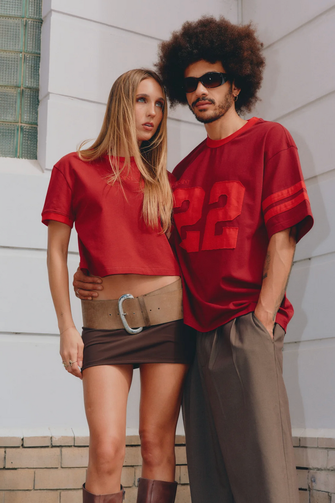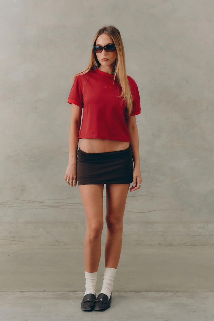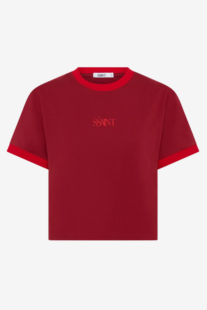 Introducing the SŚAINT Logo Baby Tee in Red