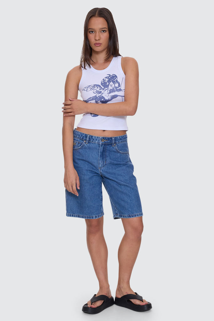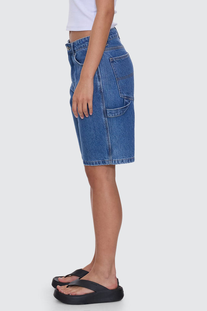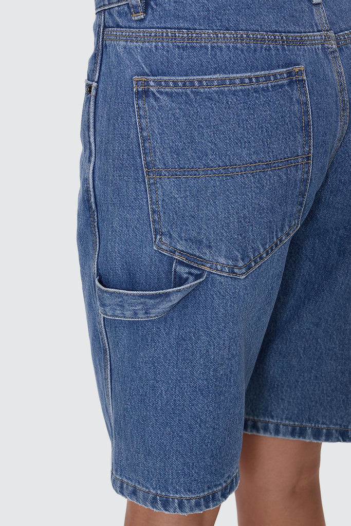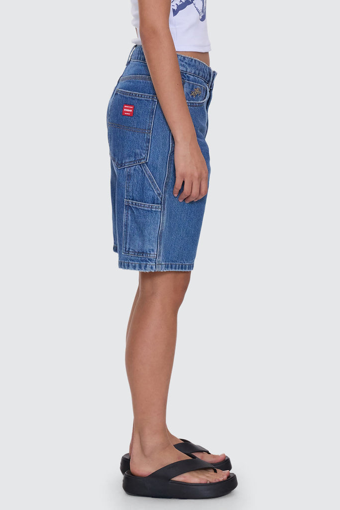 The Carpenter Short is a mid-rise, relaxed-fit denim short crafted from 100% non-stretch cotton denim. Designed with classic carpenter details, including side tool pockets and a hammer loop, these shorts blend function with a retro aesthetic.