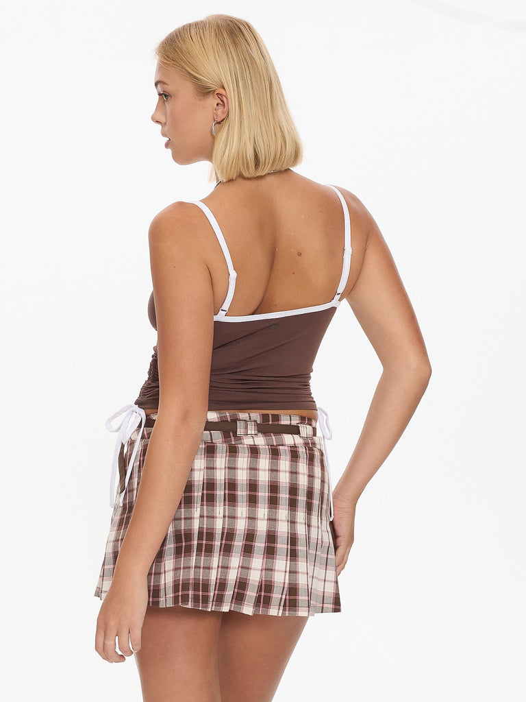 Ruched and ready to go, the Cherub Singlet in Dark Choc effortlessly blends a throwback attitude with a body-hugging, slightly cropped cut. Made from soft, stretchy cotton jersey, this black women's tank top features contrast bind details, delicate straps, and side gathers that add shape without sacrificing comfort. Finished with a subtle cherub graphic, this Worship Supplies staple is a go-to piece for spring and summer, perfectly styled solo or layered under a denim jacket.